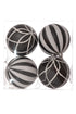 100Mm Ball & Vertical Stripe Ball Ornament (Black/White) Pkg/4