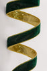 1" X 20Yds Wired Velvet Ribbon with Metallic Edge Green