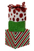 16" Sparkle Stripe Dot Gift Box Stack With Bow Red/White/Green