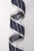 2.5" X 10Yds Wired Satin Diagonal Glitter Stripe W/Silver Firefly Edge Ribbon Navy/Silver