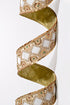 2.5'' X 5Yds Velvet Jewel Sequin Floral Pattern Ribbon Winter White/Gold