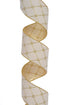 4" X 5Yds Tufted Velvet With Jewel Ribbon Ivory/Gold