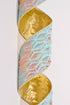 4" X 5Yds Wired Diamond Jacquard Ribbon Aqua/Mauve