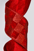 4" X 5Yds Wired Velvet Glitter Check Ribbon Red